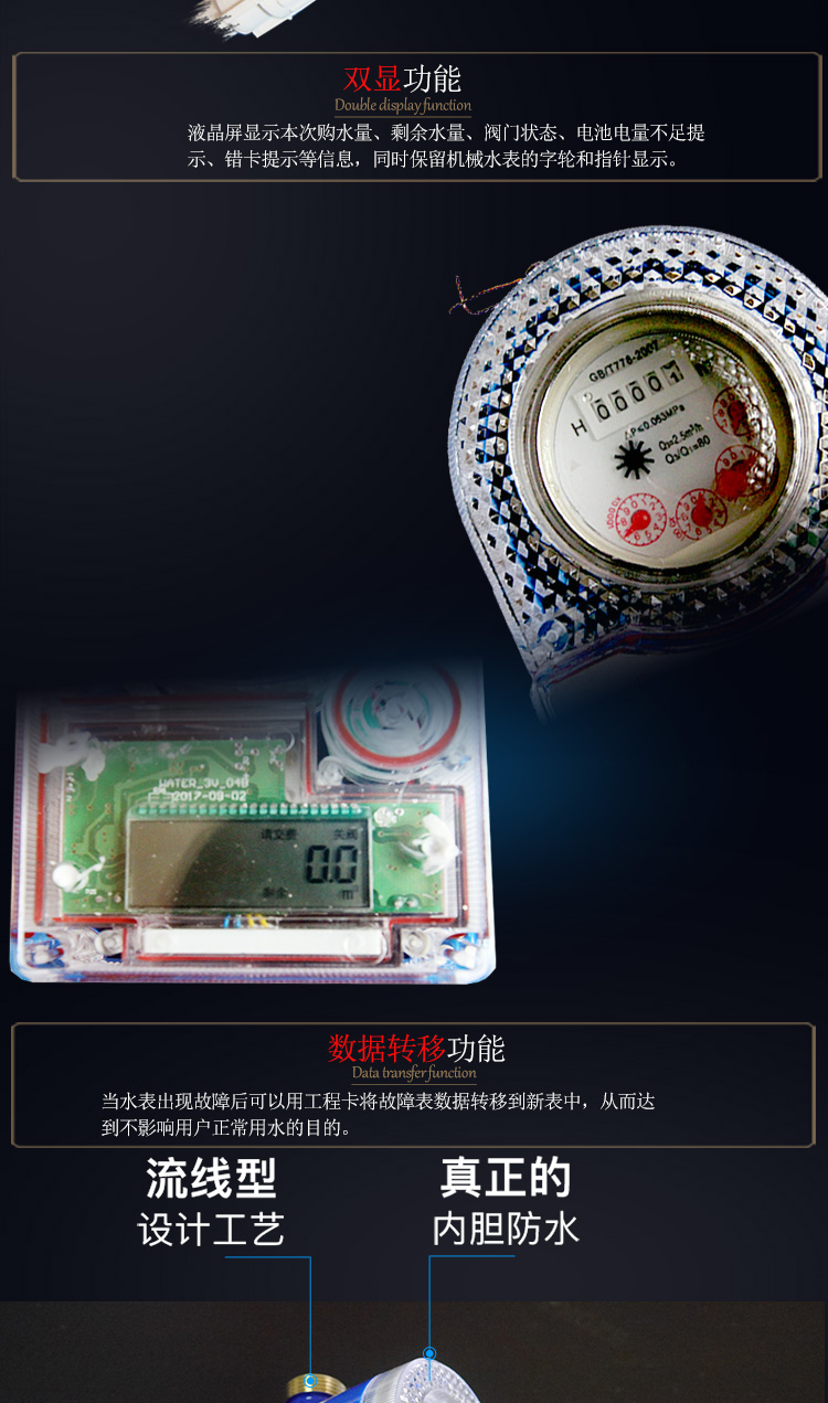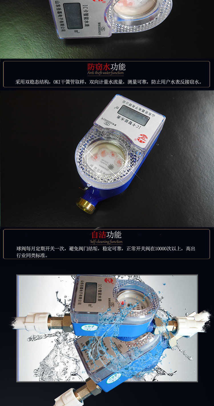 ●具备预付款功能,当购入的水用完后,水表将自动关闭阀门。