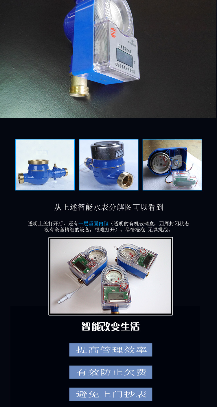 ●水表壳体由高密度pc材质制成,稳固,结实且抗冲击;整个水表使用盒装双层防水构造密封,水表的上,下壳用密封垫圈密封,电路板体内安装在单独的小壳中